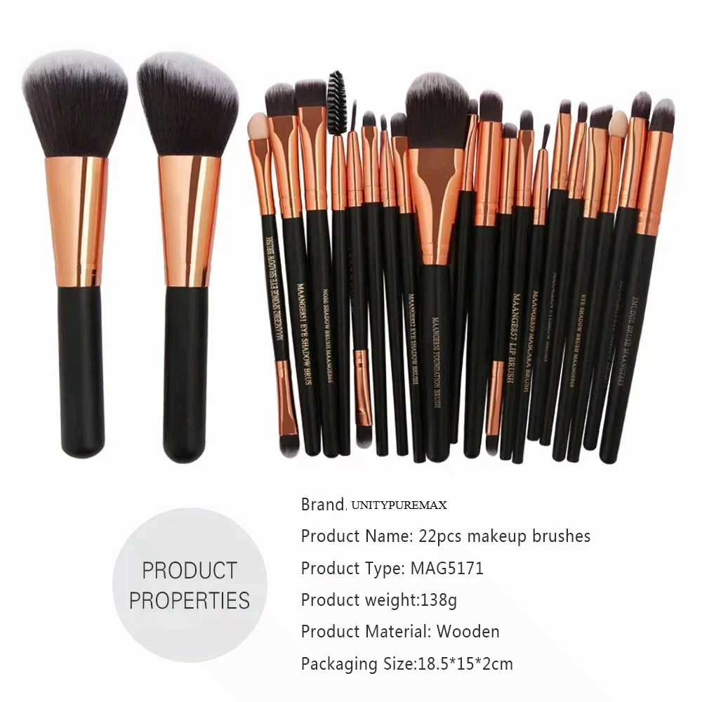 • Comprehensive 22-Piece Set: Includes everything from large, fluffy powder brushes to ultra-fine eyeliner and lip brushes.