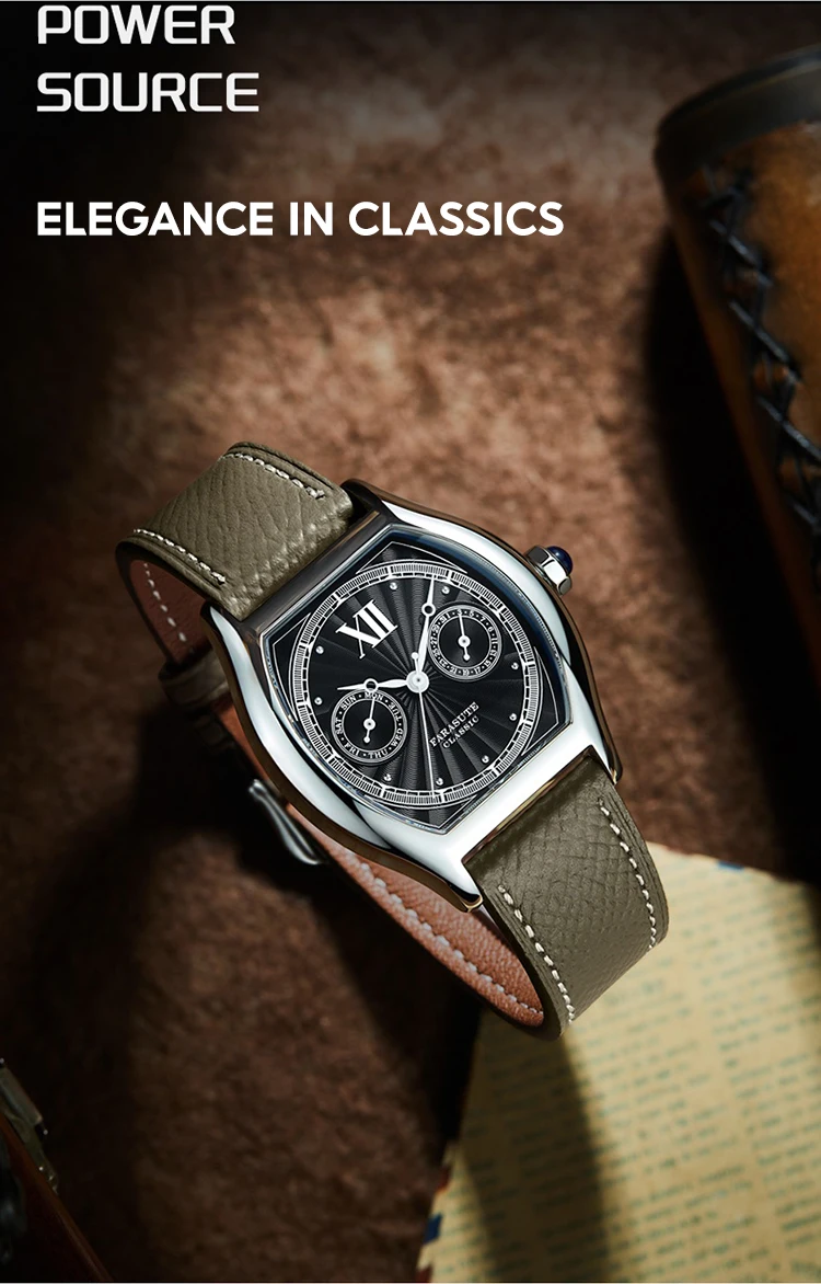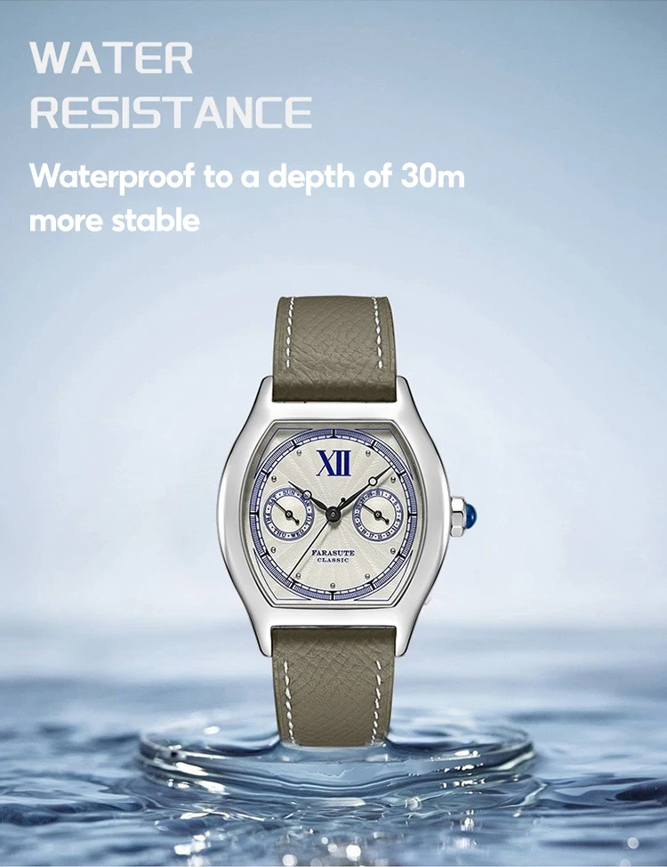 men quartz watch, Farasute watch, 36mm men watch, sapphire glass watch, Japanese quartz watch, leather strap men watch, stainless steel quartz watch, classic men wristwatch, waterproof men watch