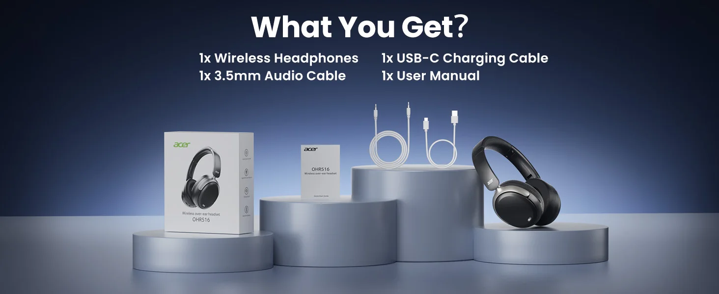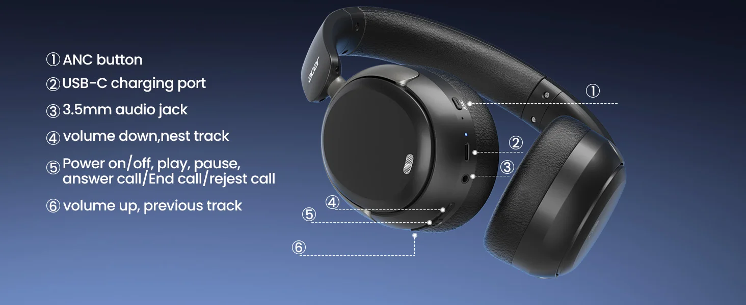 Acer OHR516 ANC Wireless Headphones – 40mm Hi-Res Drivers, Dual Bluetooth, Low-Latency Game Mode, 100H Battery 7Acer OHR516 ANC Wireless Headphones – 40mm Hi-Res Drivers, Dual Bluetooth, Low-Latency Game Mode, 100H Battery