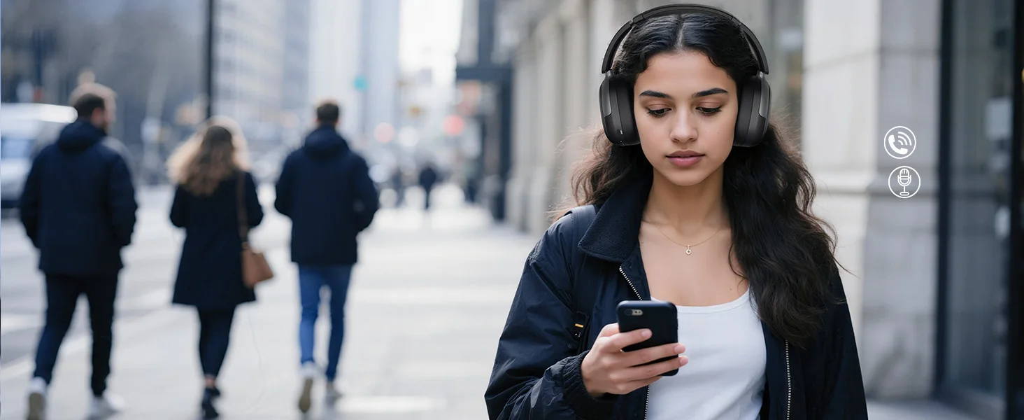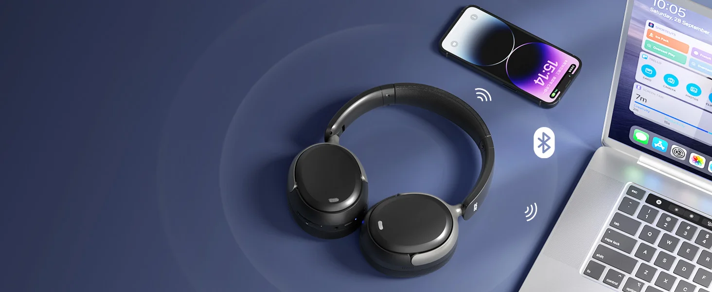Connect to two devices simultaneously—such as your smartphone and laptop—and switch instantly with one click. Perfect for multitasking professionals, online meetings, and seamless call-to-music transitions.