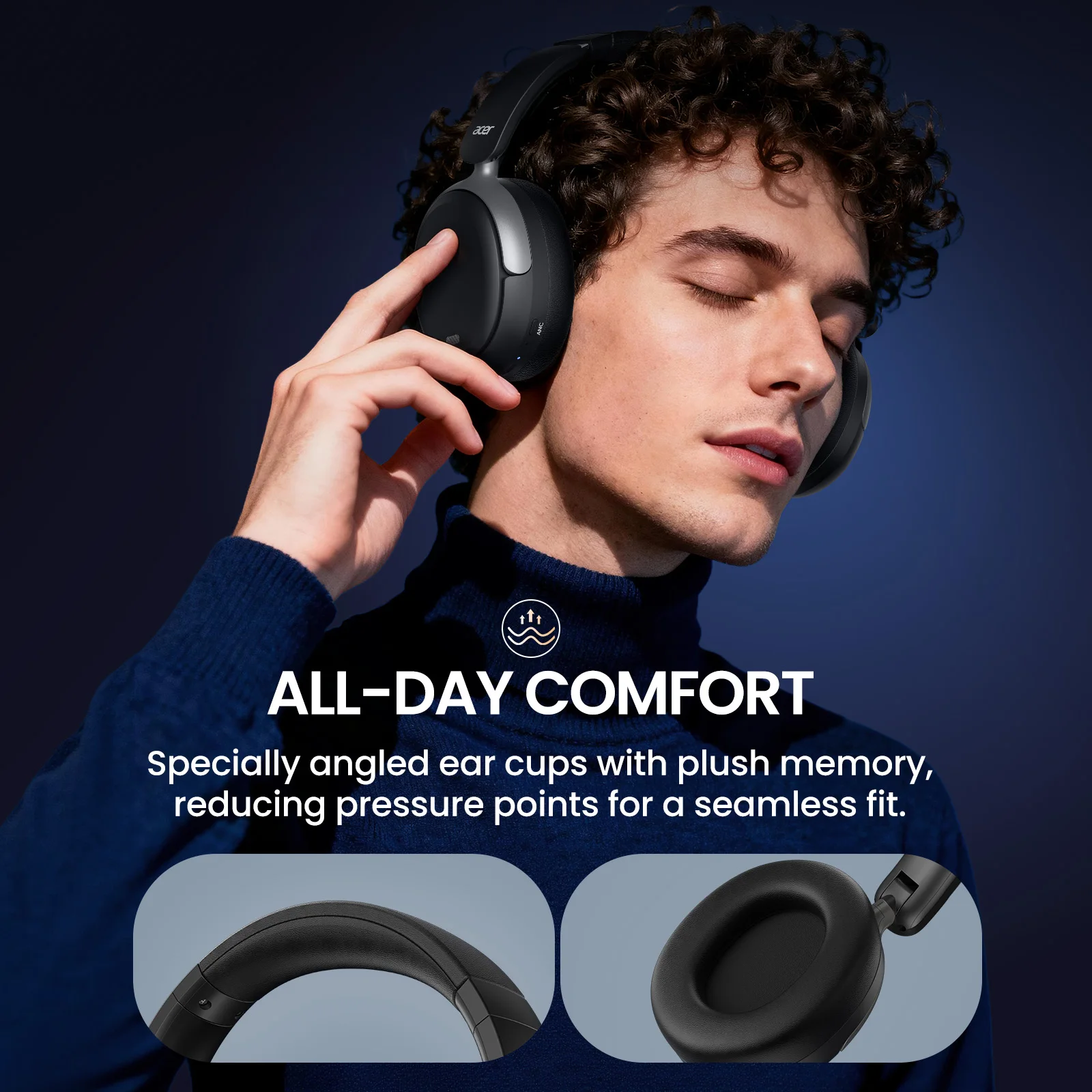 Acer OHR516 ANC Wireless Headphones – 40mm Hi-Res Drivers, Dual Bluetooth, Low-Latency Game Mode, 100H Battery