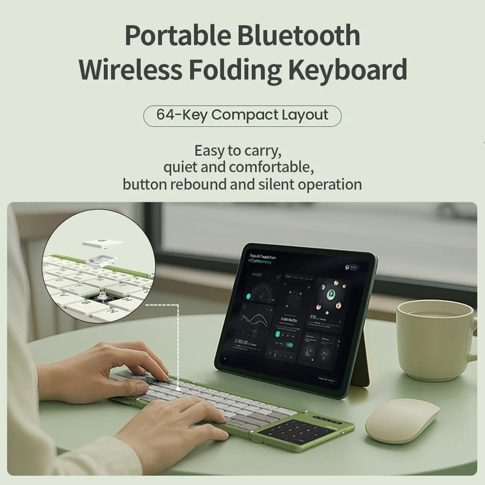 Compact folding structure fits easily into bags, backpacks, or even pockets—ideal for travel and on-the-go use.Built-In Touchpad