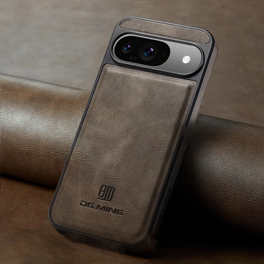 Luxury magnetic leather case for Google Pixel with shockproof, drop-resistant protection. Ultra-slim, non-slip design compatible with magnetic car holders.